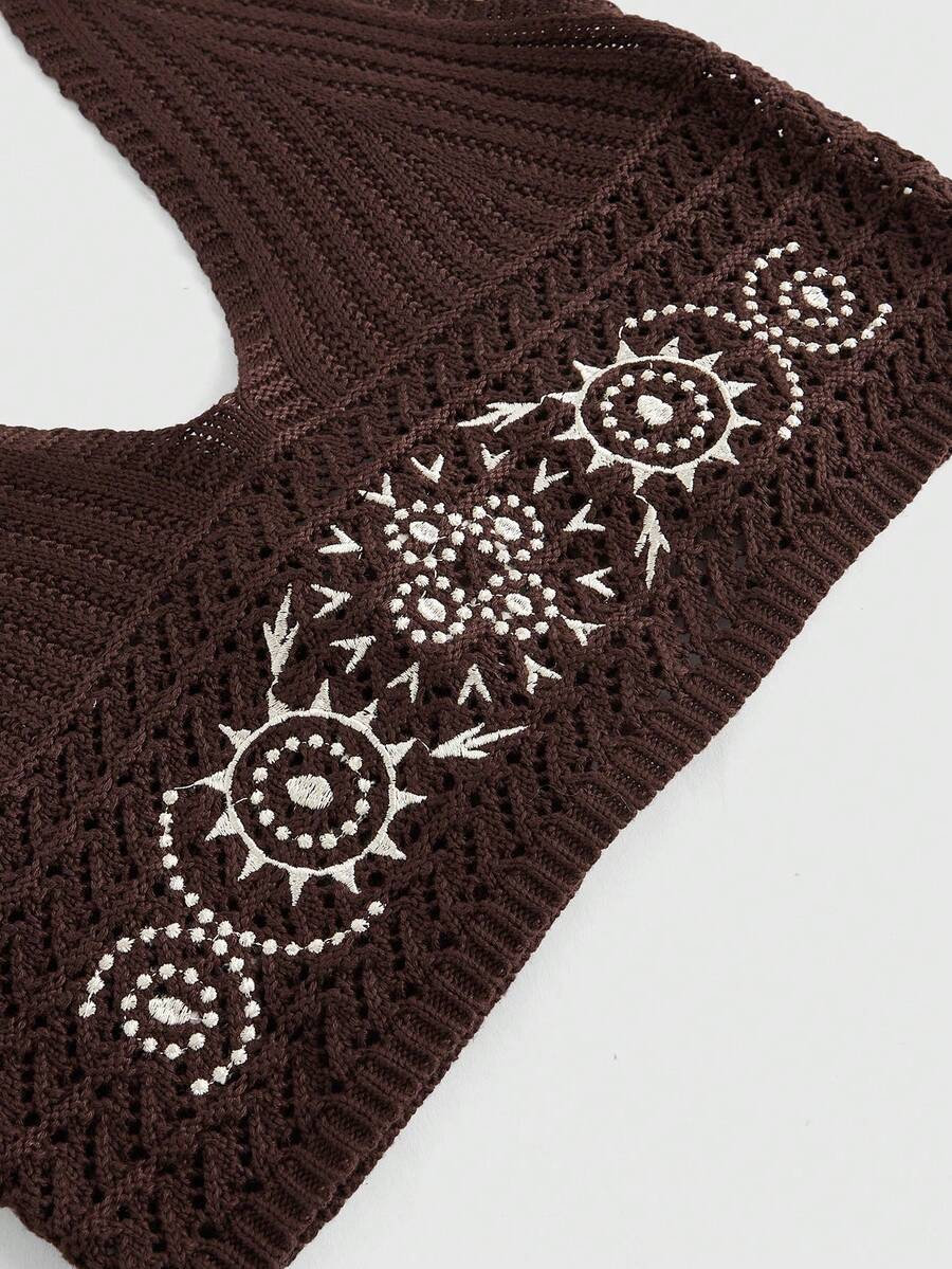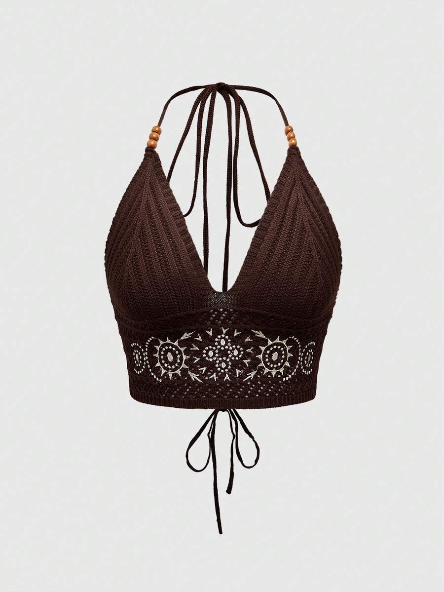 Hippie ملابس علوية محبوك برباط أمامي وياقة مرتفعة مطرز بطراز الزهور بوهو للنساء ، للربيع والصيف