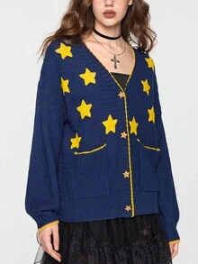 EDITION كارديجان مضلع بنمط نجمي بألوان متباينة بطراز هيبي