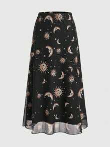 Hippie تنورة توتو متوسطة الطول بطبعات القمر والشمس والنجوم