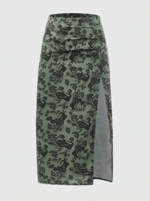 Hippie تنورة طباعة بيزلي فتحة للفخذ