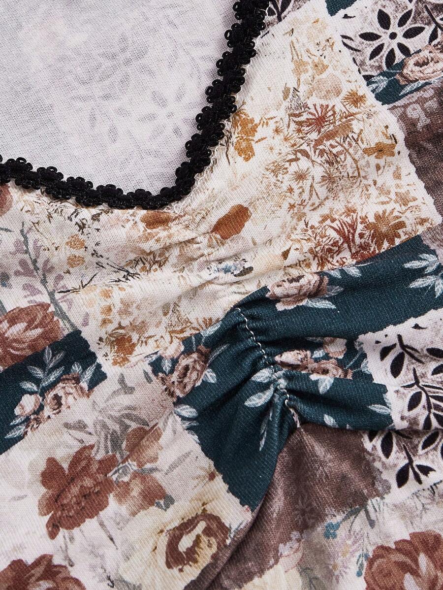 Hippie تي-شيرت ذو أكمام طويلة برقبة V وطبعة لفتات من القماش