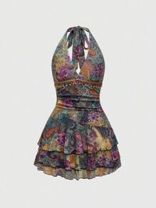 Hippie فستان متماسك قصير للنساء، طراز بوهيمي غربي، شرابات مزينة بالخرز