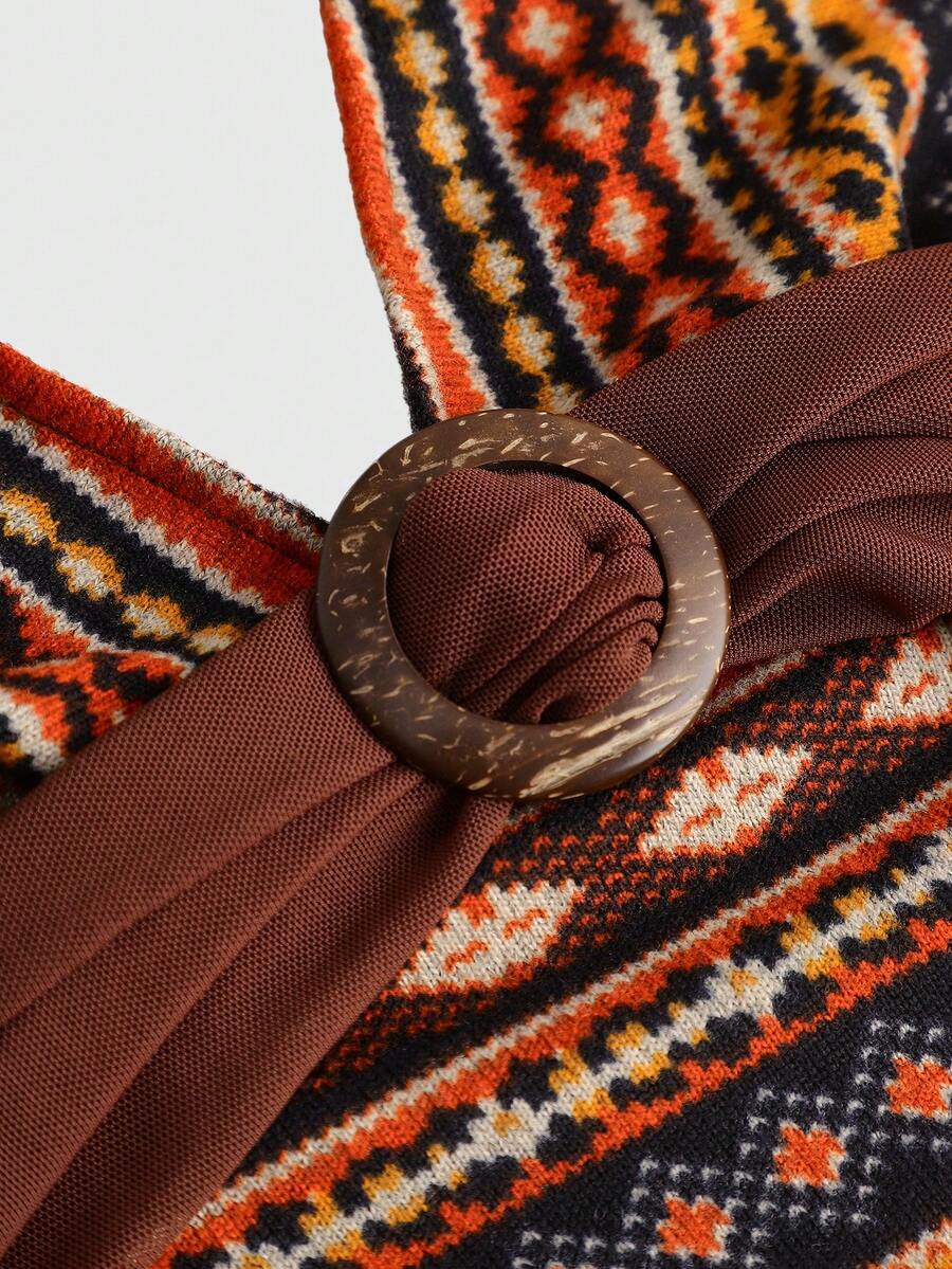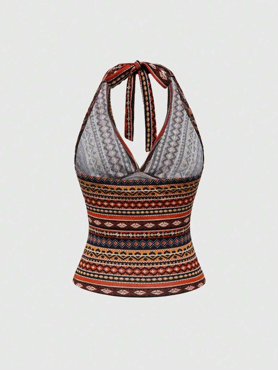 Hippie ملابس علوية كاجوال بدون ظهر برقبة عالية مطبوع عليها أشكال هندسية لفترات الراحة والعطلات