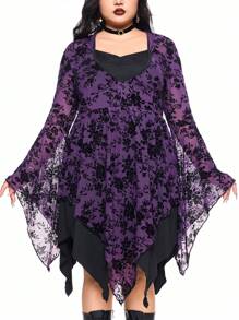 Hippie فستان قصير مع أكمام ناسفة مزخرف بأسلوب الساحرة، ذو حاشية غير متماثلة لأحجام السيدات البادية
