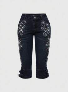 Hippie سراويل جينز نسائية بقصة واسعة مزينة بالراين ستون بطراز بانك ريترو فاخر
