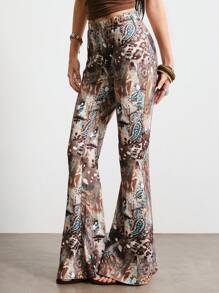 Hippie بنطلون نسائي كاجول بنمط مطبوع رجعي ذو ساق واسعة، مناسب للعطلات