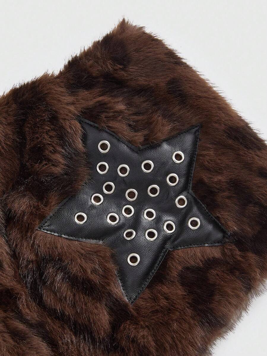 Hippie مجموعة قطعتين من ملابس علوية قصير من الفرو الصناعي بنمط النمر مع جيب نجمي، طراز Y2K هاراجوكو للنساء