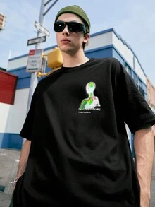 INFLATION تيشيرت منخفض الاكتاف بطباعة شعار رجالي