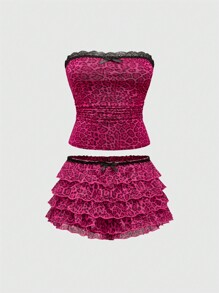 J-Fashion مجموعة شورت قصير مطبوع جلد نمر وردي قوي لأسلوب جيرلو Y2K للسيدات، 2 قطع