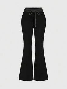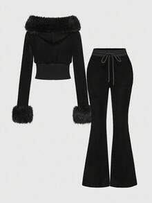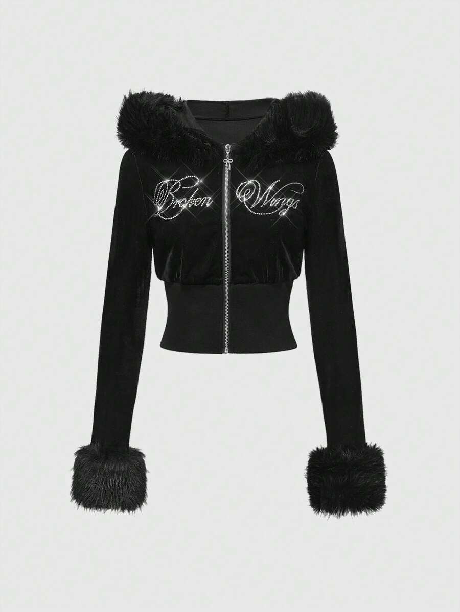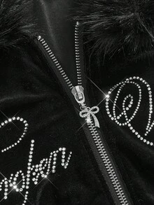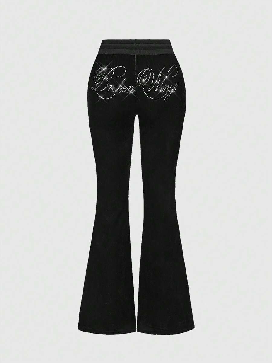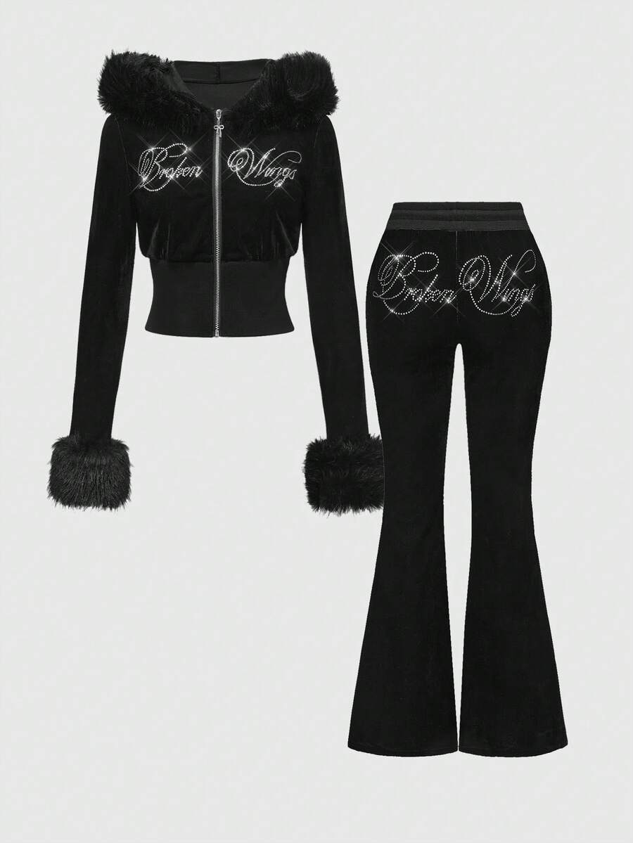J-Fashion مجموعة بلوزة رياضية مزينة بالفيلكرو والراين للنساء، خريف/شتاء، قطعتان