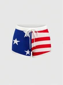 J-Fashion سراويل نسائية مصنوعة من التريكو بنقوش نجوم وخطوط شبيهة بعلم أمريكا، مناسبة لاحتفالات اليوم الوطني الرابع من يوليو