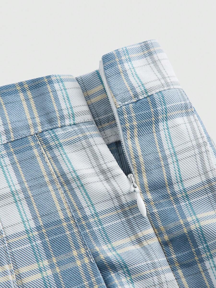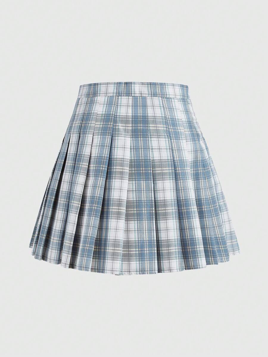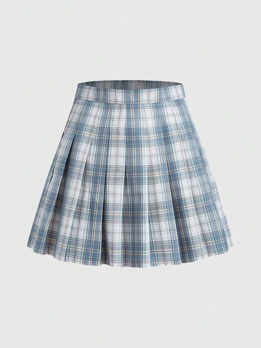 J-Fashion تنورة مكرمشة بطباعة مربعات الشاح، مدرسة