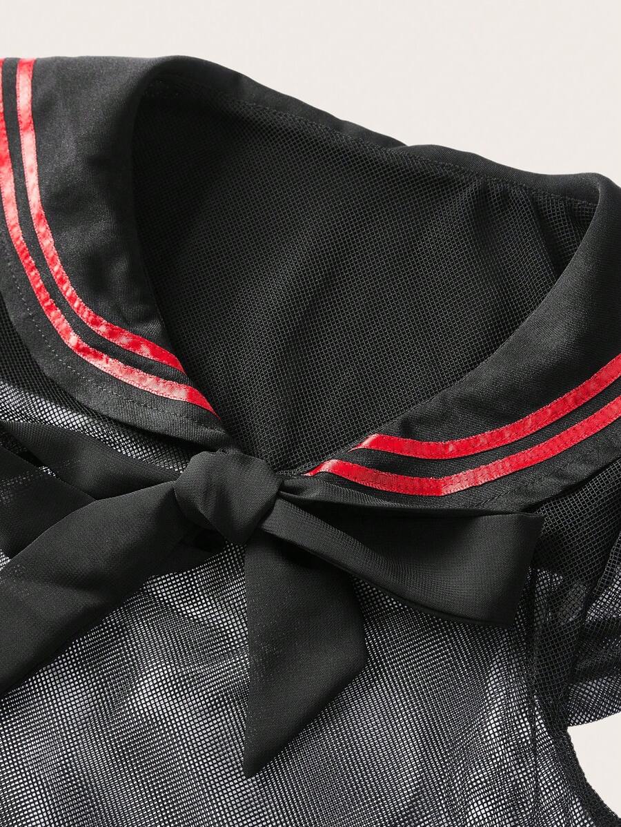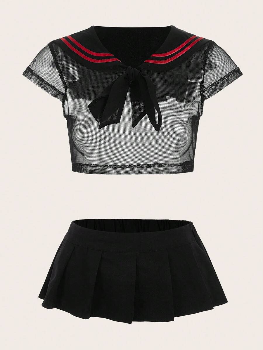 J-Fashion ياقة البحار شبكة طقم ملابس داخلية & تنورة