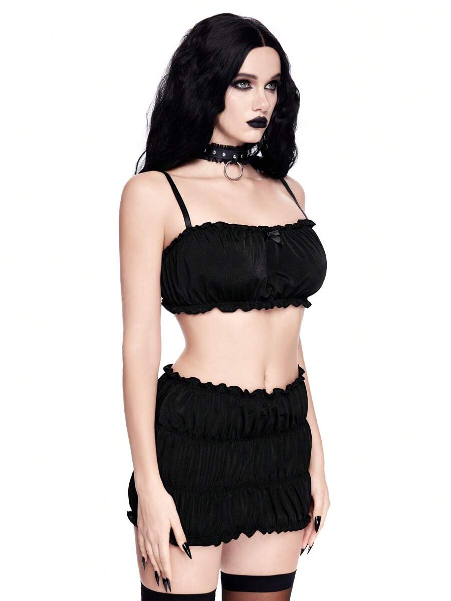 J-Fashion طقم حمالة صدر لاسلكية بكشكشة وسروال وتنورة من طراز شيبويا غيارلو