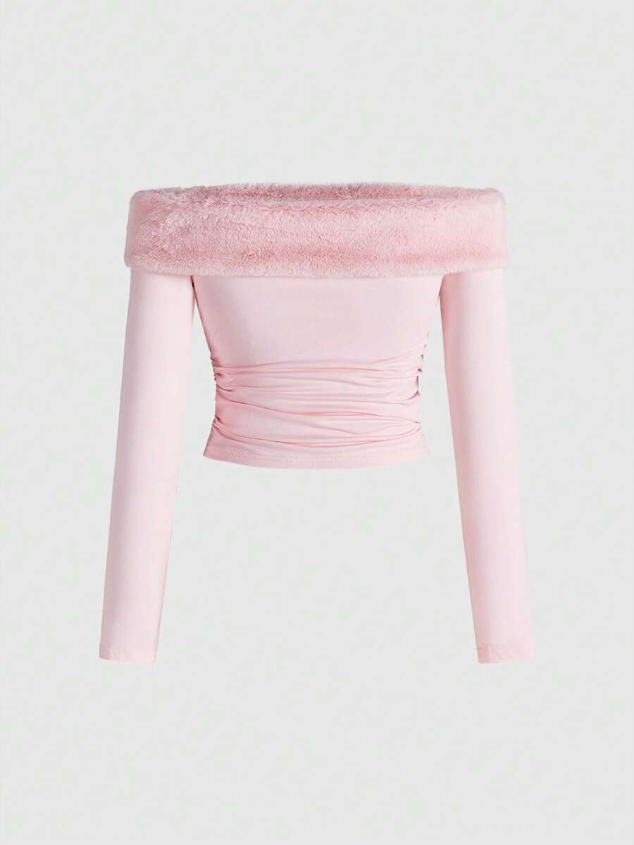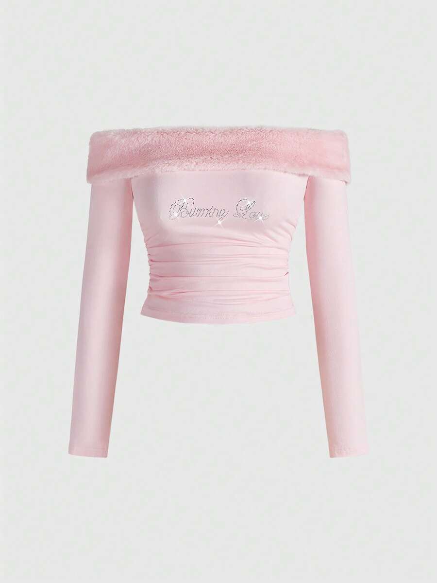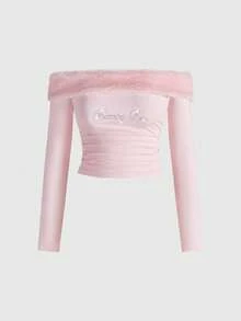 J-Fashion ملابس علوية نسائي مطرز بالراين ستون بنمط الفرو المزيف بطبعة الزيبرا والرقعة المحبوكة، مناسب لعيد الحب