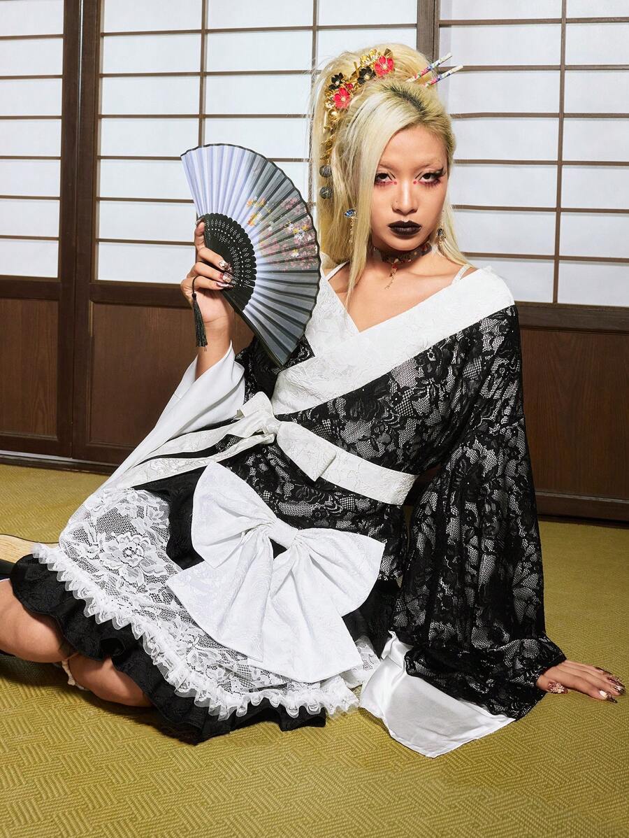 J-Fashion بلوزة نسائية بأكمام طويلة، بتصميم سترة الكيمونو، بتركيبة الدانتيل والألوان المتباينة