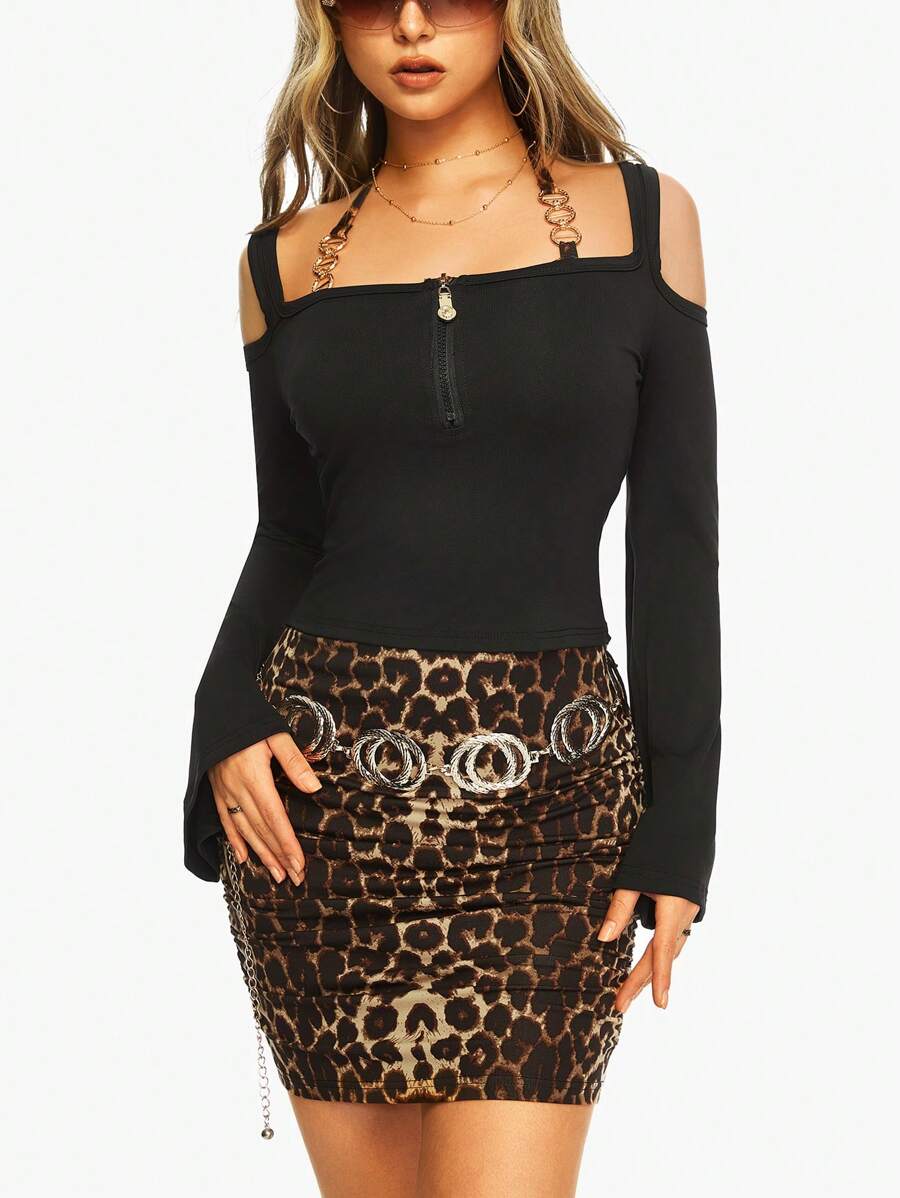J-Fashion فستان قصير من قطعتين بطبعة نمر للنساء