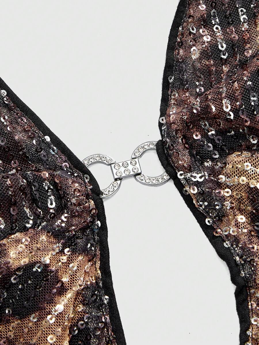 J-Fashion سترة كاميه سيكسي من قماش الترتر بطبعة نمر، بأسلوب موسيقى المهرجان