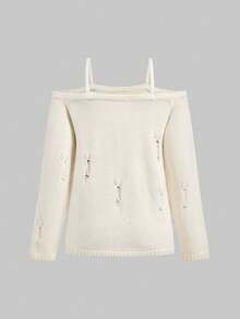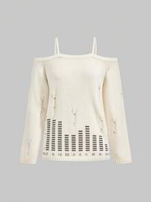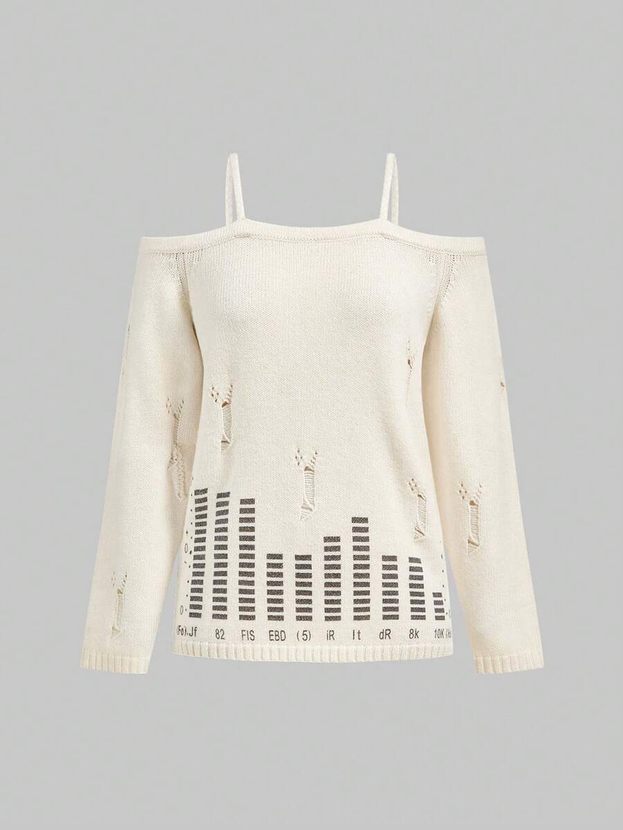 J-Fashion كنزة صوفية نسائية مثيرة بأكتاف باردة وحمالات رفيعة مطبوعة بطباعة البيانو المتهالكة
