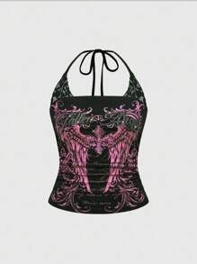J-Fashion لباس علوي التانك بدون أكمام بطبعة بانكوليتون 2 في 1 تباين، مناسب لمهرجان الموسيقى للنساء