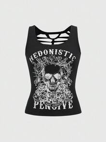 J-Fashion ملابس علوية بدون ظهر مزين بالتفاصيل الكروشيه والطباعة الهيكلية العظمي بطراز Y2K الرجعي للنساء