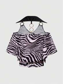 J-Fashion تي شيرت نسائي فضفاض ذو نمط زيبرا وأكمام على شكل خفاش من طراز Abby Himekaji من عصر Y2K