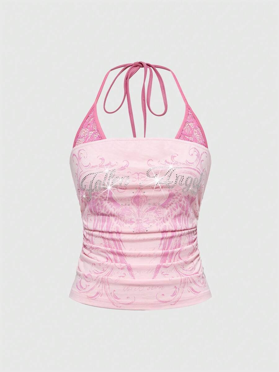 J-Fashion ملابس علوية بدون أكمام ضيقة الجسم مطبوعة بهيكل عظمي بتصميم متباين مع الدانتيل، ملابس حفلات Y2K للنساء بطراز بانك