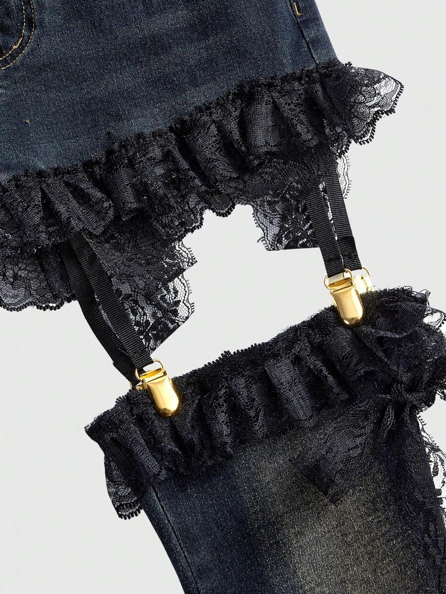 J-Fashion بنطلون جينز نسائي ذو خصر منخفض جدًا بتصميم رجعي، مع تصميم بتفاصيل الدانتيل
