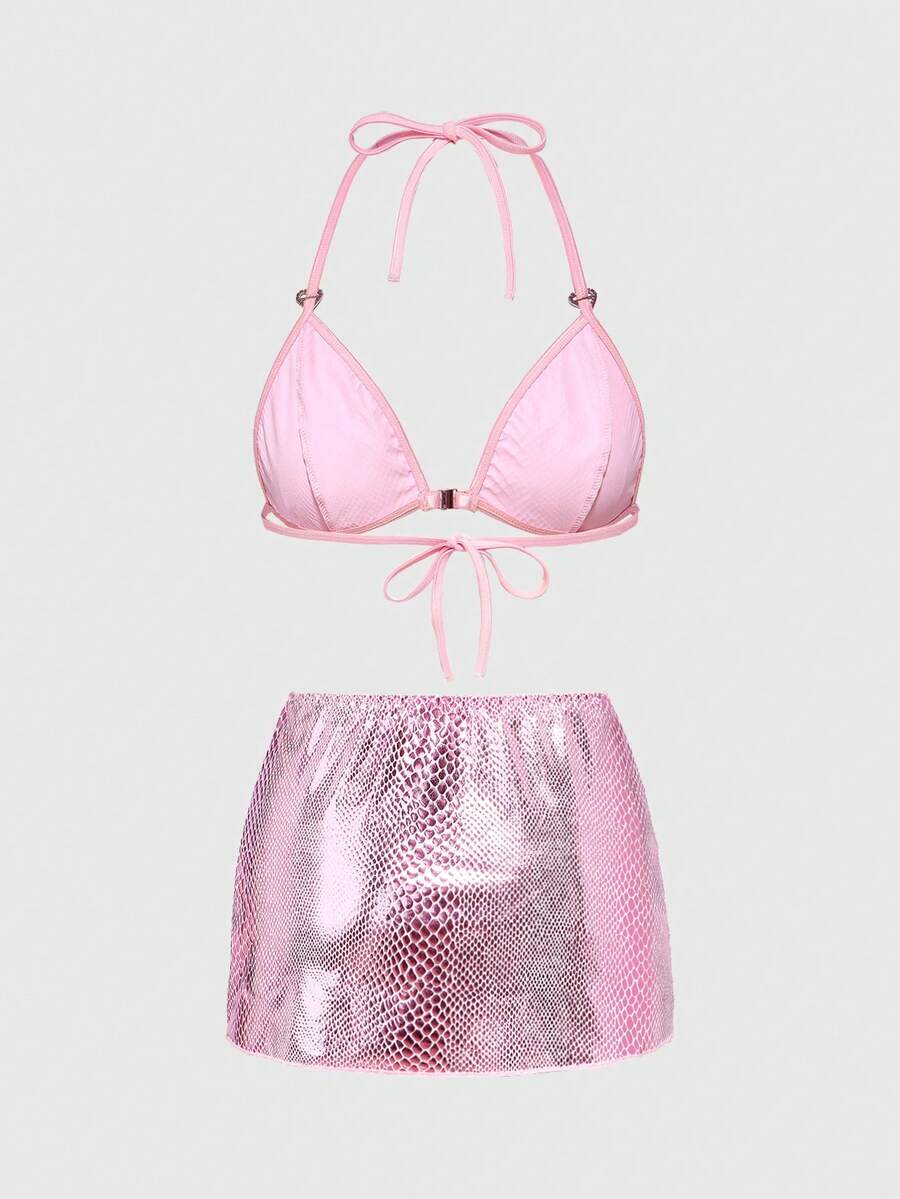 J-Fashion طقم ملابس داخلية جذاب للنساء مطبوع بنمط جلد الثعبان مع ربطة