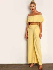Joyfunear طقم لباس علوي متين نمط المحاصيل مع سروال بساق واسع