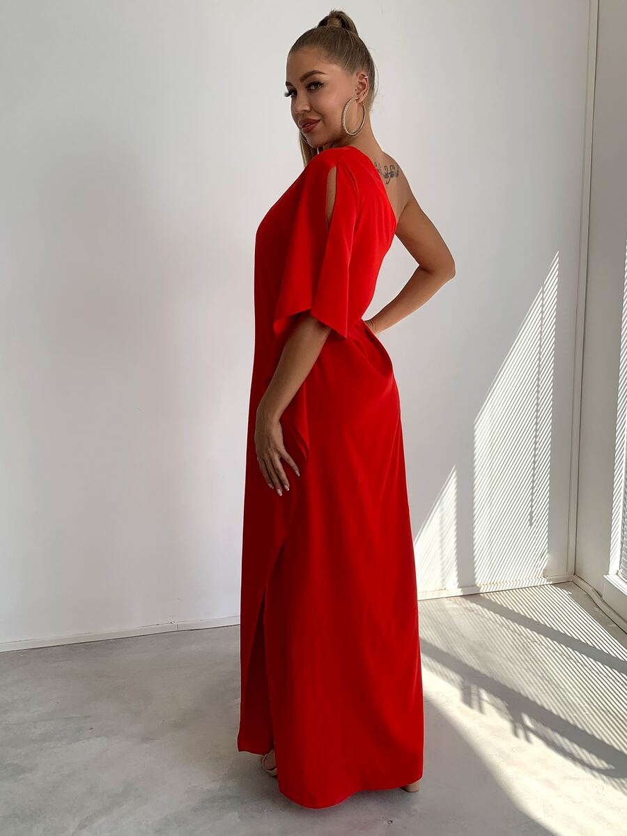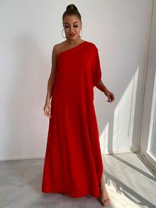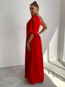 Joyfunear فستان نسائي كاجوال منفذ بالجانب أكمام خفاش جامد وجذاب للاحتفالات