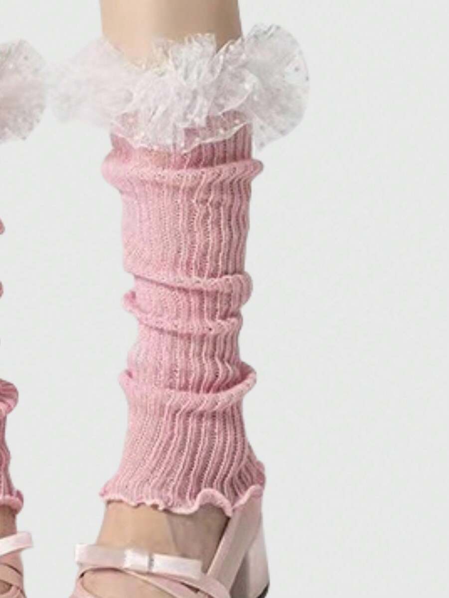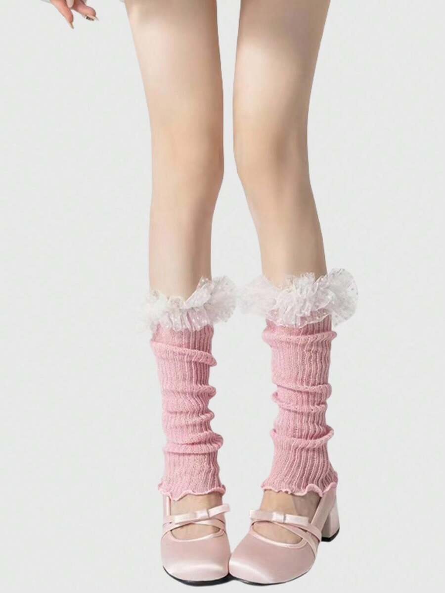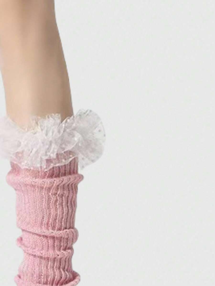 Kawaii زوج من أغطية الساق الشبكية المزينة بالنقاط والزهور الجميلة