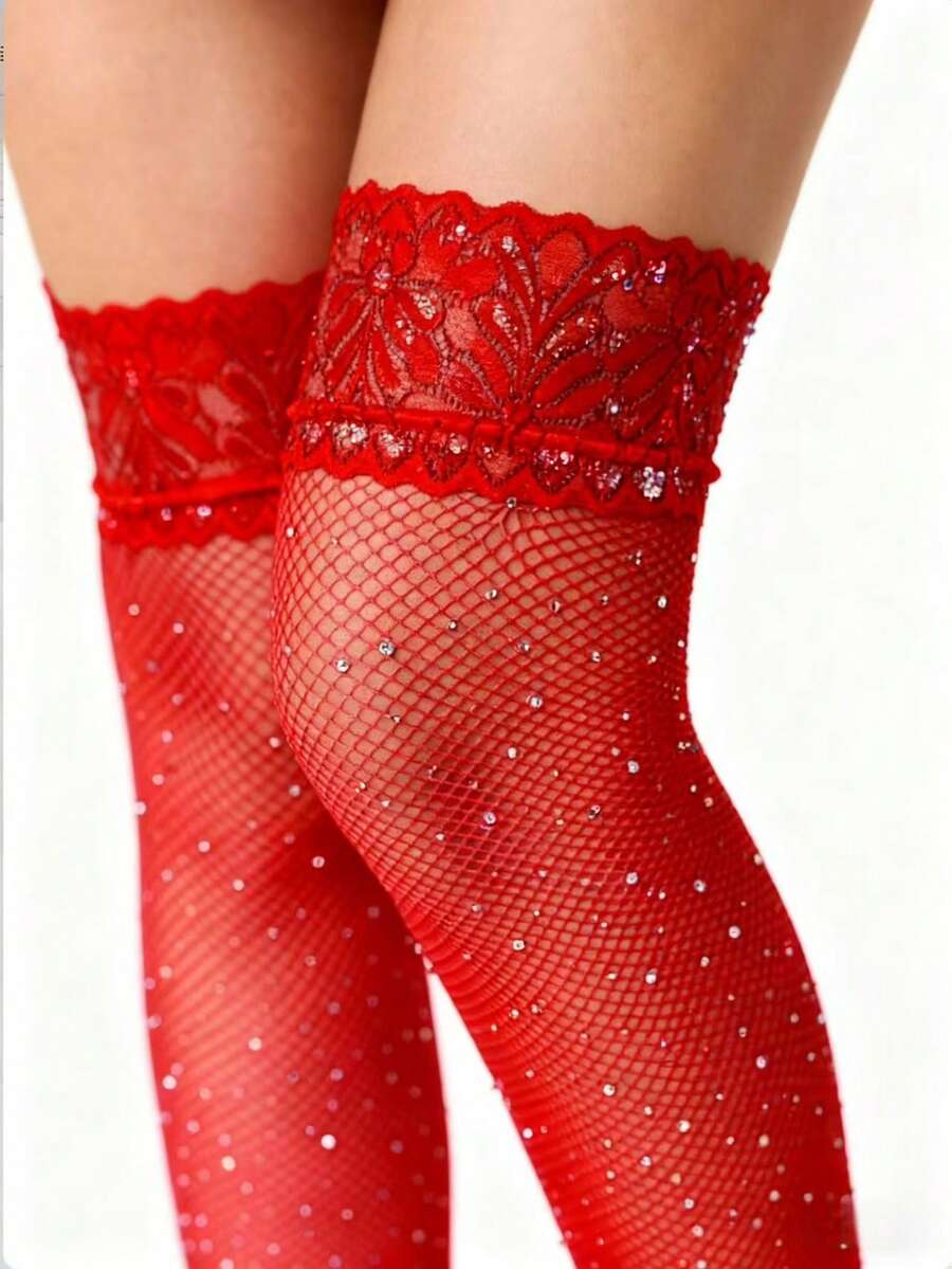 Kawaii زوج جوارب طويلة حتى الفخذ مزخرفة بالراين الأنيقة والجذابة باللون الفوشيا، مناسبة للمناسبات الرومانسية والحفلات والمهرجانات الموسيقية