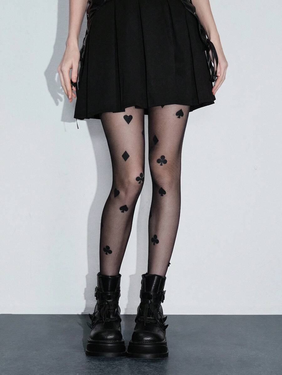 Kawaii زوج من جوارب النساء الأنيقة والجذابة المطبوعة بنقوش ورق اللعب، مناسبة لجميع الفصول
