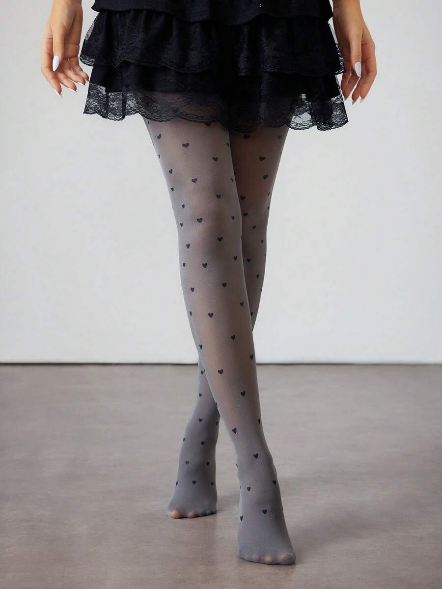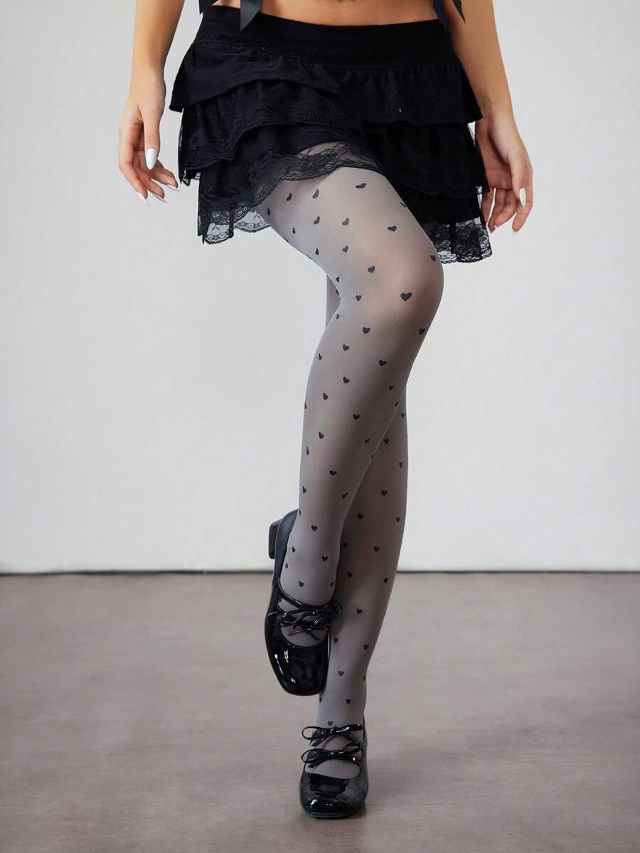 Kawaii زوج من جوارب نسائية مطبوع عليه قلب أسود غوثي من المخمل