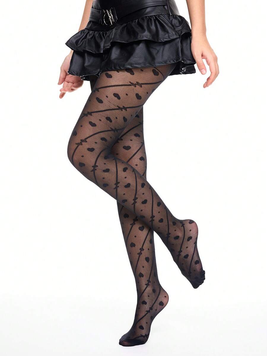 Kawaii زوج من جوارب مخططة بشكل قلب ، جوارب سوداء بأنماط نقاط ضرائب رقيقة وجذابة للنساء ، جوارب شفافة رقيقة باللون البشري
