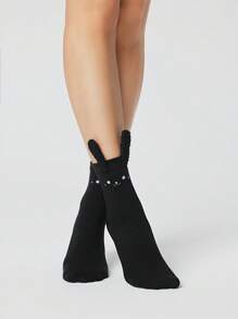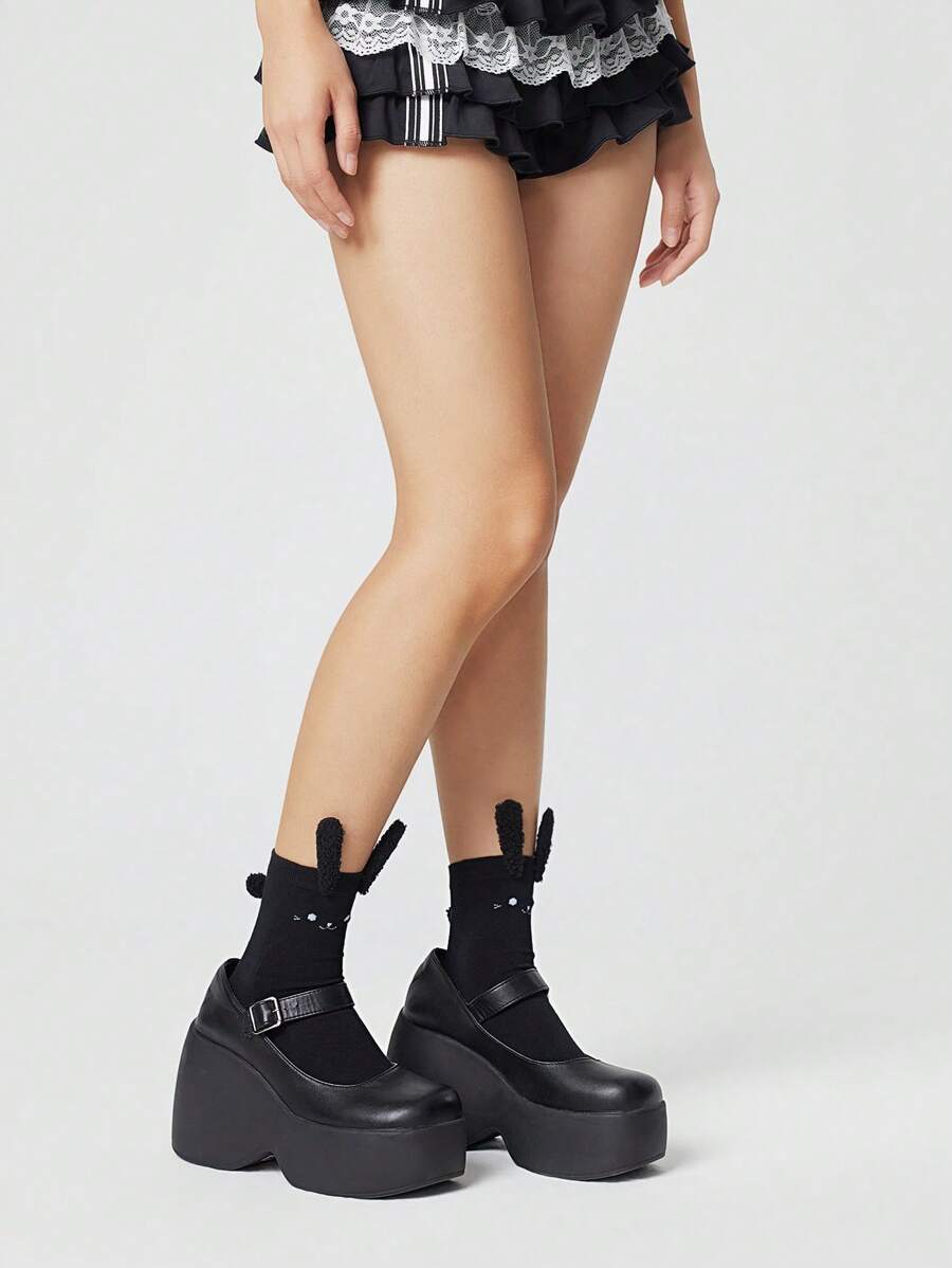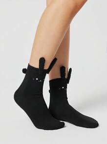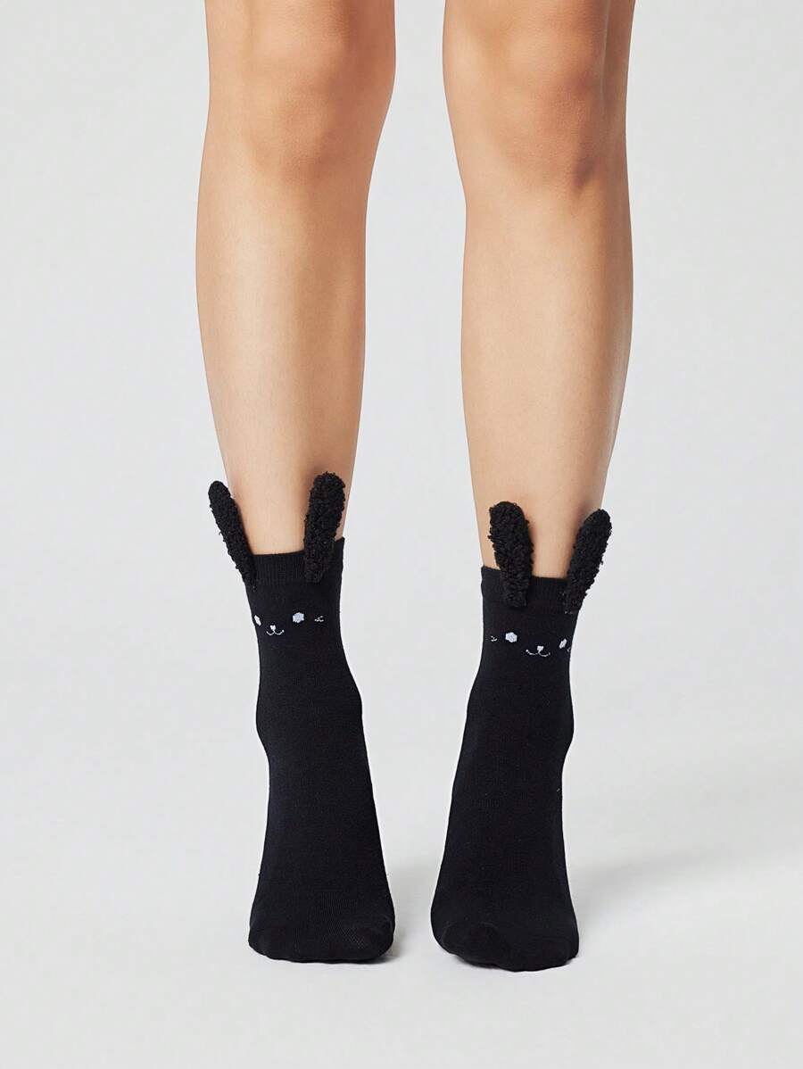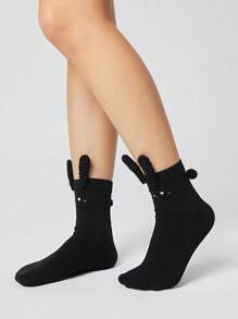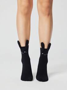 Kawaii زوج من الجوارب متوسطة الطول التي تصل إلى منتصف الساق للنساء بتصميم أذن الأرنب ثلاثي الأبعاد، بطراز كاواييي، مناسبة لجميع الفصول