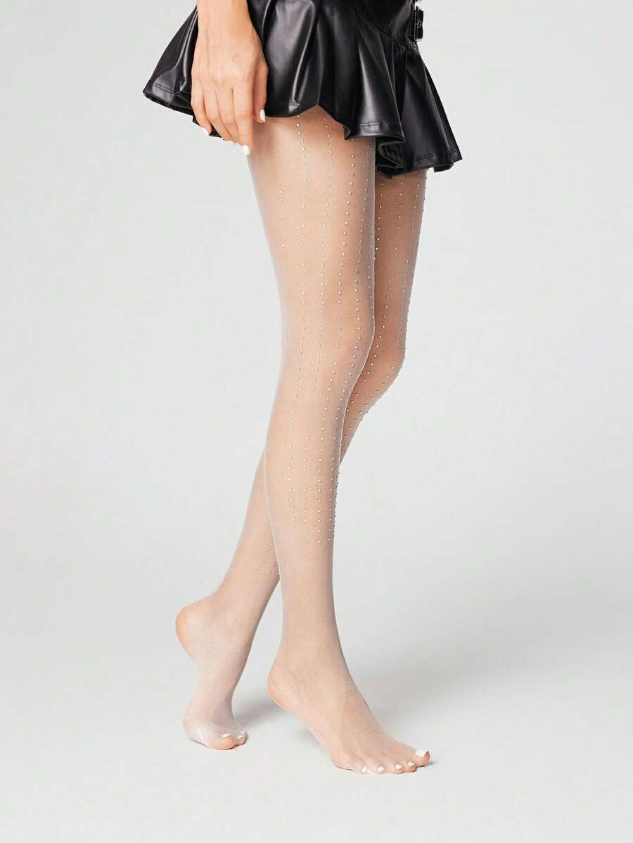 Kawaii زوج من جوارب شبكية للنساء بكريستال أبيض وأسود رأسي مناسبة لجميع المواسم