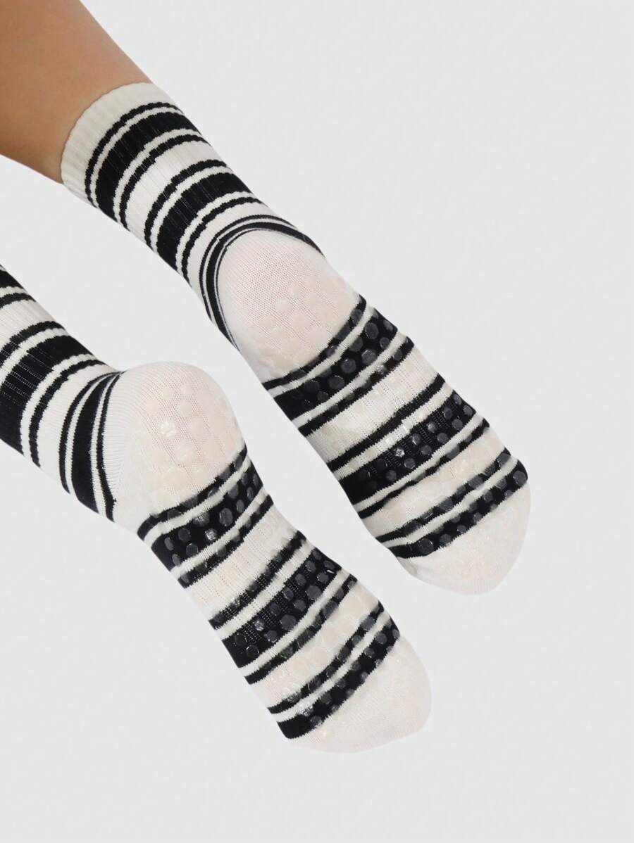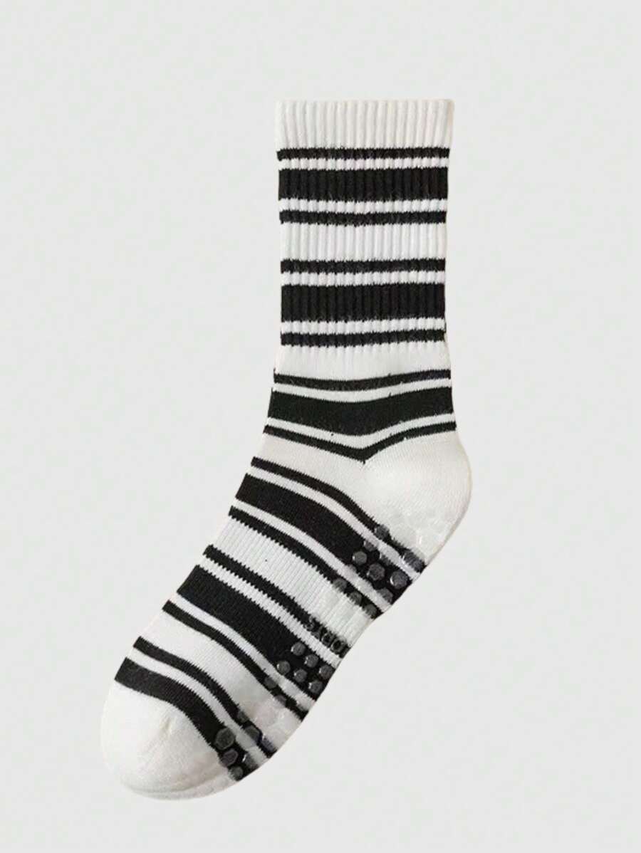 Kawaii زوج من الجوارب النسائية المضادة للانزلاق ذات الخطوط والنقاط لليوجا، جوارب وسط الساق عادية للجنسين