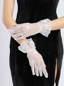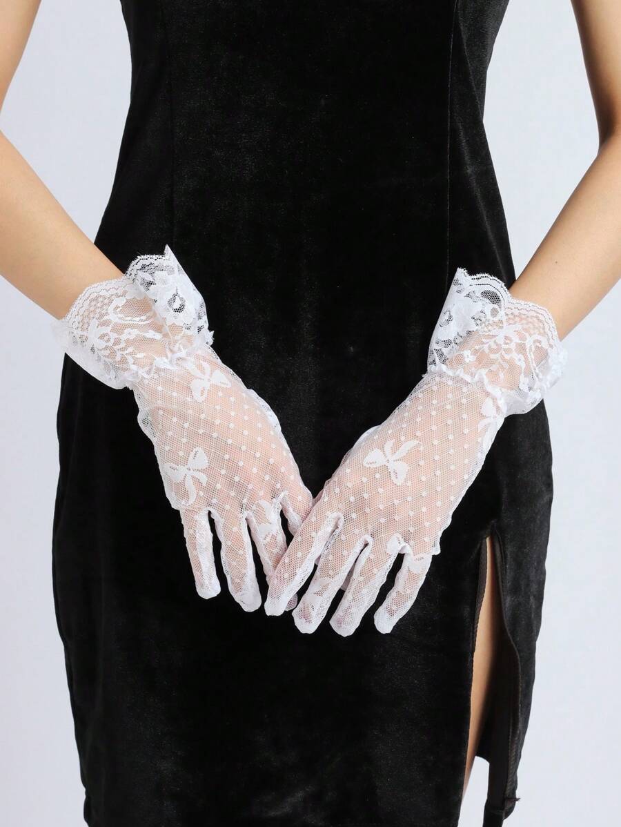 Kawaii زوج من القفازات البيضاء بشريط دانتيل على شكل فرنشة للعروس بطراز لوليتا