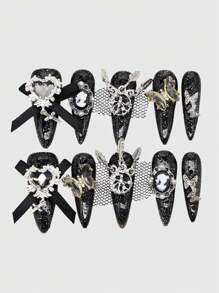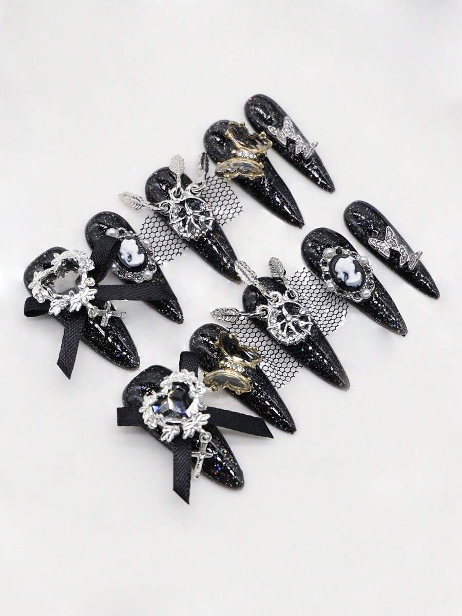 Kawaii 10 قطعة من أظافر الأسلوب الجوتي الداكن ثلاثية الأبعاد الفراشة اليدوية عالية الجودة + 3 قطع شريط لاصق ثنائي الوجه، ملصقات أظافر مأساوية من طراز Y2K، ملصقات فنية لأظافر قابلة للإزالة مرسومة باليد، مناسبة للمهرجانات والحفلات والرقص والارتداء اليومي