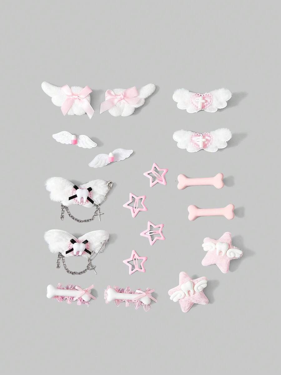 Kawaii 12 قطعة عشوائية الأنماط دبابيس شعر على شكل أجنحة وأنجم، مشابك شعر لعيد الحب، مشابك شعر مخلبية، دبابيس شعر