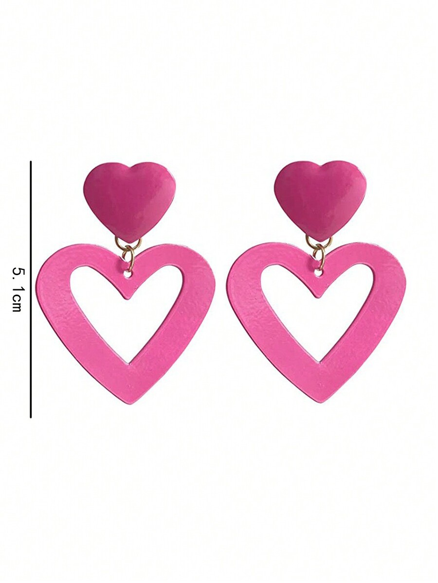 Kawaii زوج من الأقراط المتهورة بشكل قلب وردي مفرغ في اليوم العشاق
