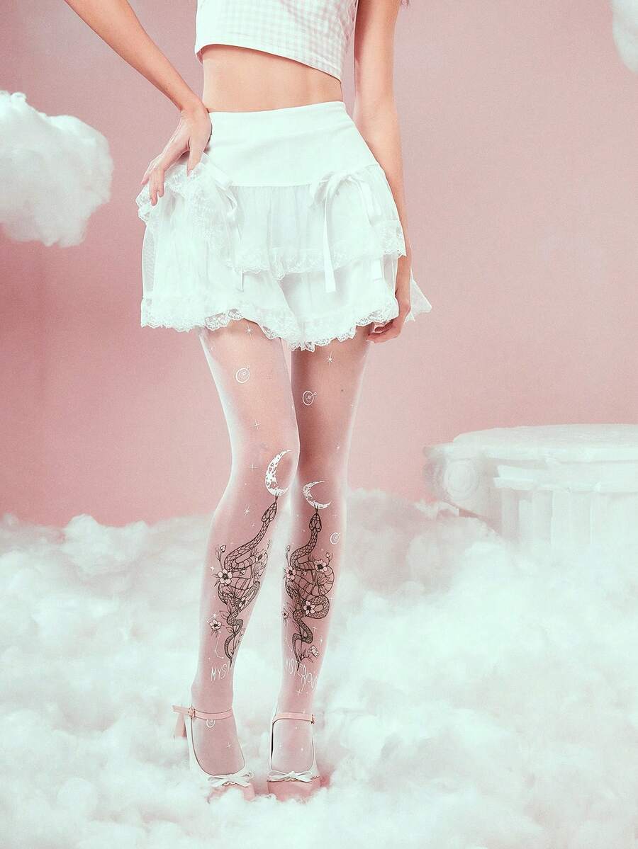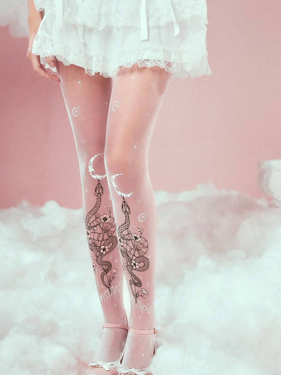 Kawaii جوارب حرف ثعبان & دانتيل زهري موضة زوج واحد نساء