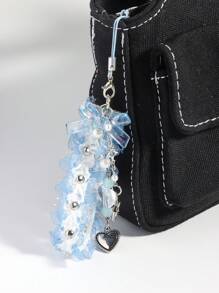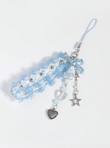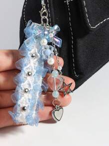 Kawaii 1 قطعة قطعة مفتاح جذابة بتصميم وردة زرقاء وكويكب مصنوعة من التول، سلسلة هاتف جوال