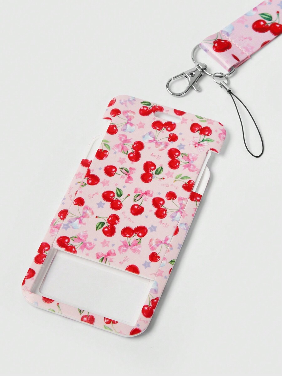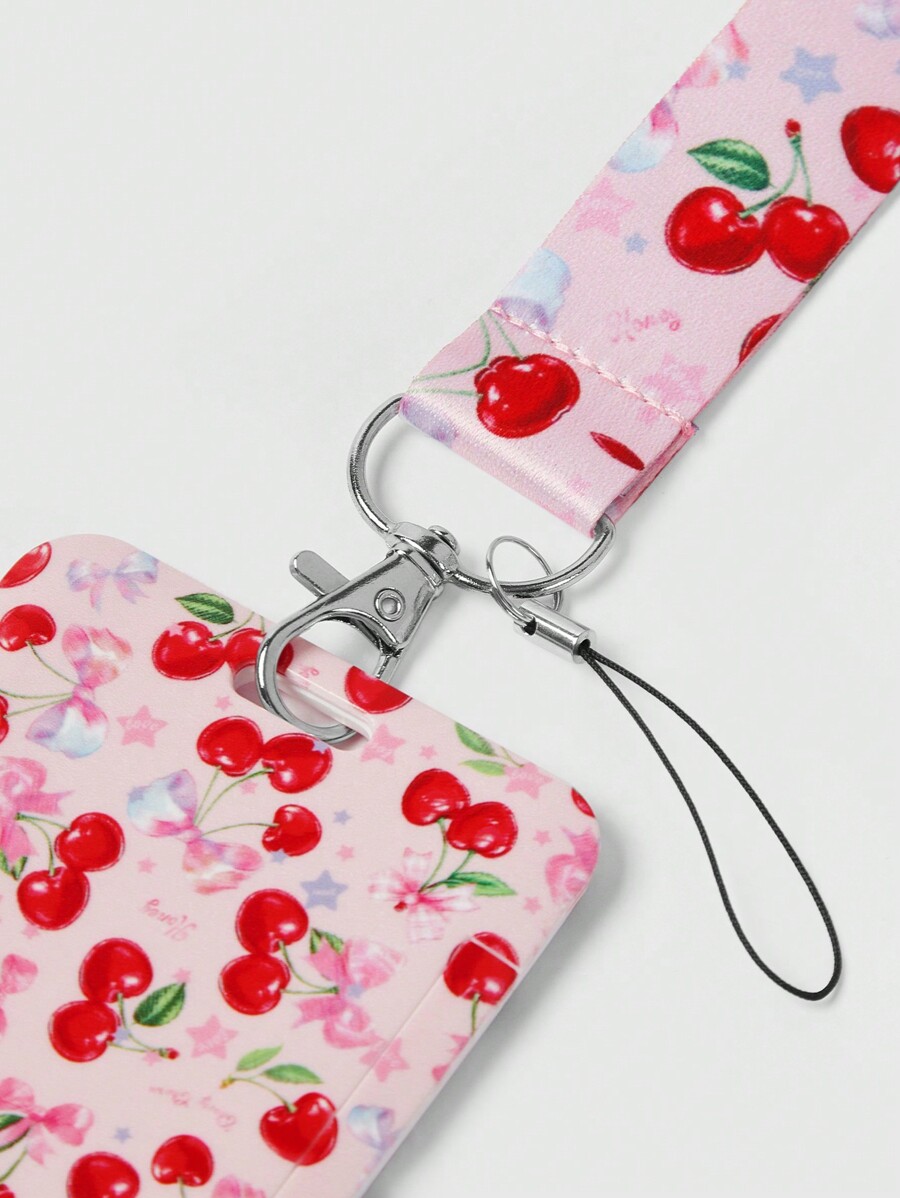 Kawaii حامل بطاقة وسلسلة قطعة واحدة بشكل جميل باللون الوردي الكرز، مدرسة
