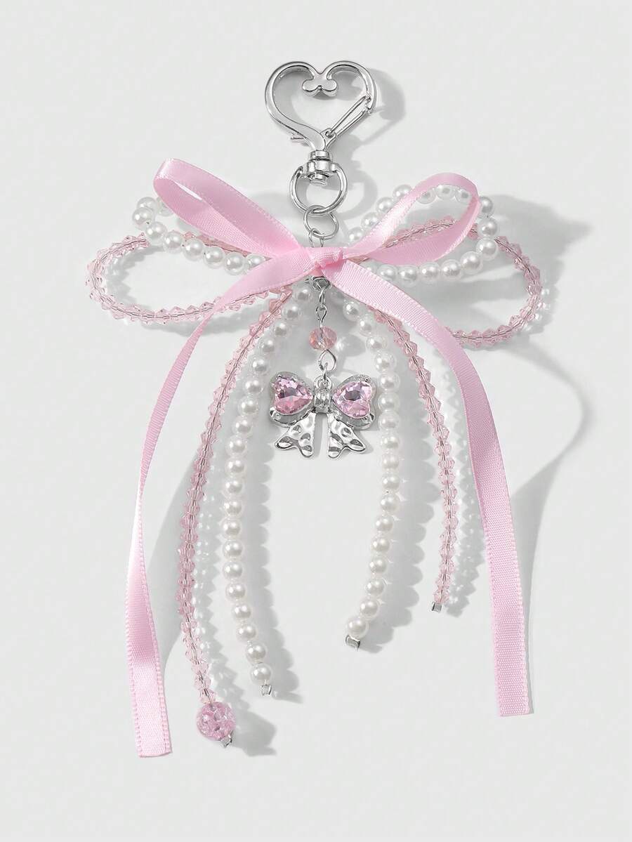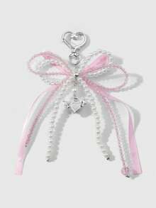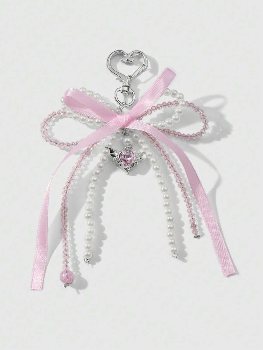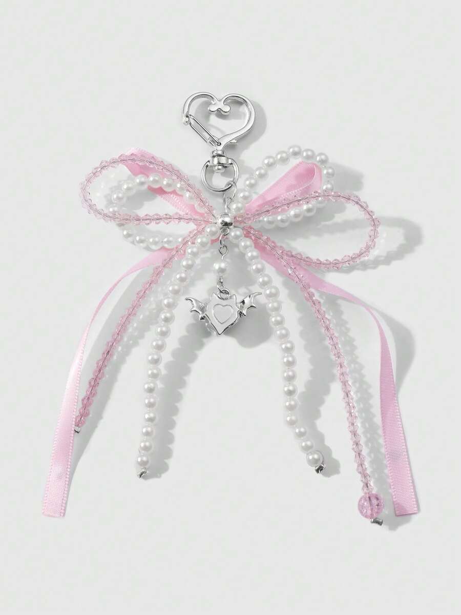 Kawaii قلادة جميلة عادية مصنوعة يدويًا بخرز أبيض مزيف بالزهري المعلقات على شكل بروح السروج، قلادة على شكل قلب مناسبة للنساء للاستخدام اليومي أو كهدايا
