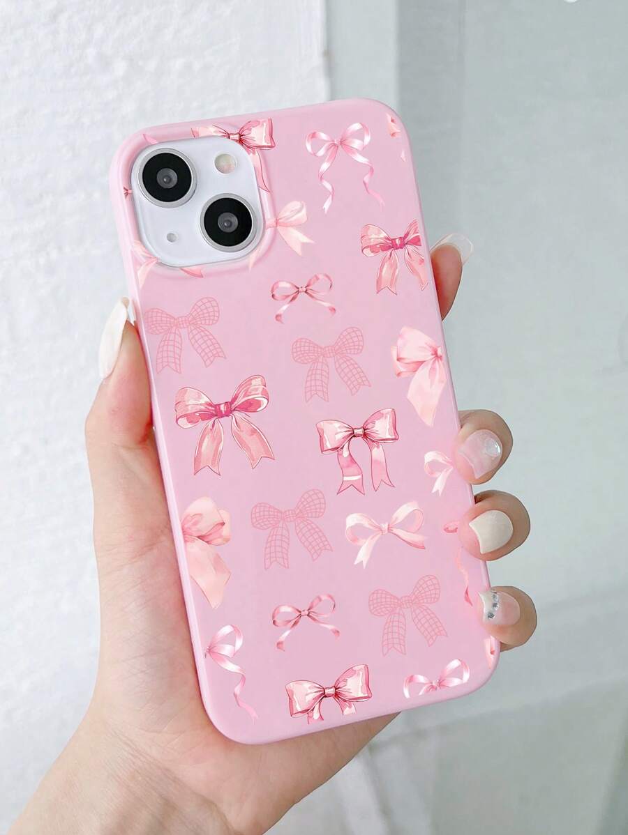 Kawaii قطعة واحدة، كفر هاتف وردي مزين بفيونكة، متوافق مع هواتف أيفون 11 و12 و13 و14 و15 برو ماكس