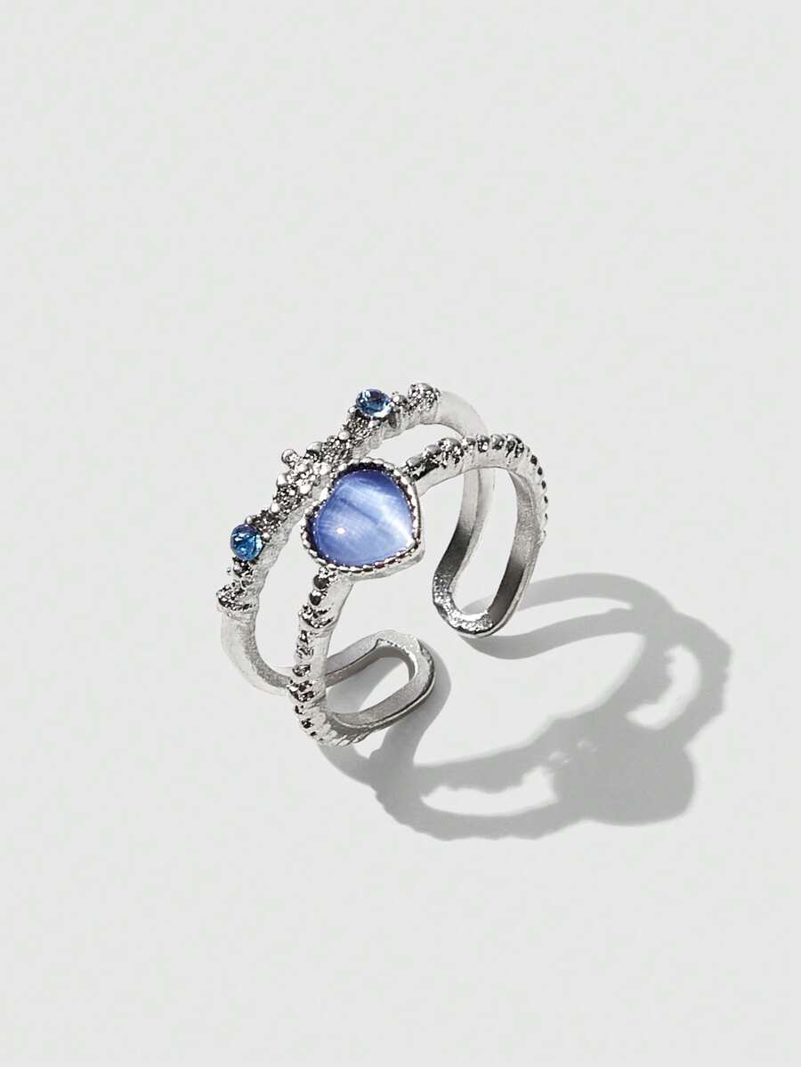 Kawaii خاتم مفتوح موضة سبائك الزنك بديكور حجر الراين قلب للنساء الزخرفة اليومية قطعة واحدة