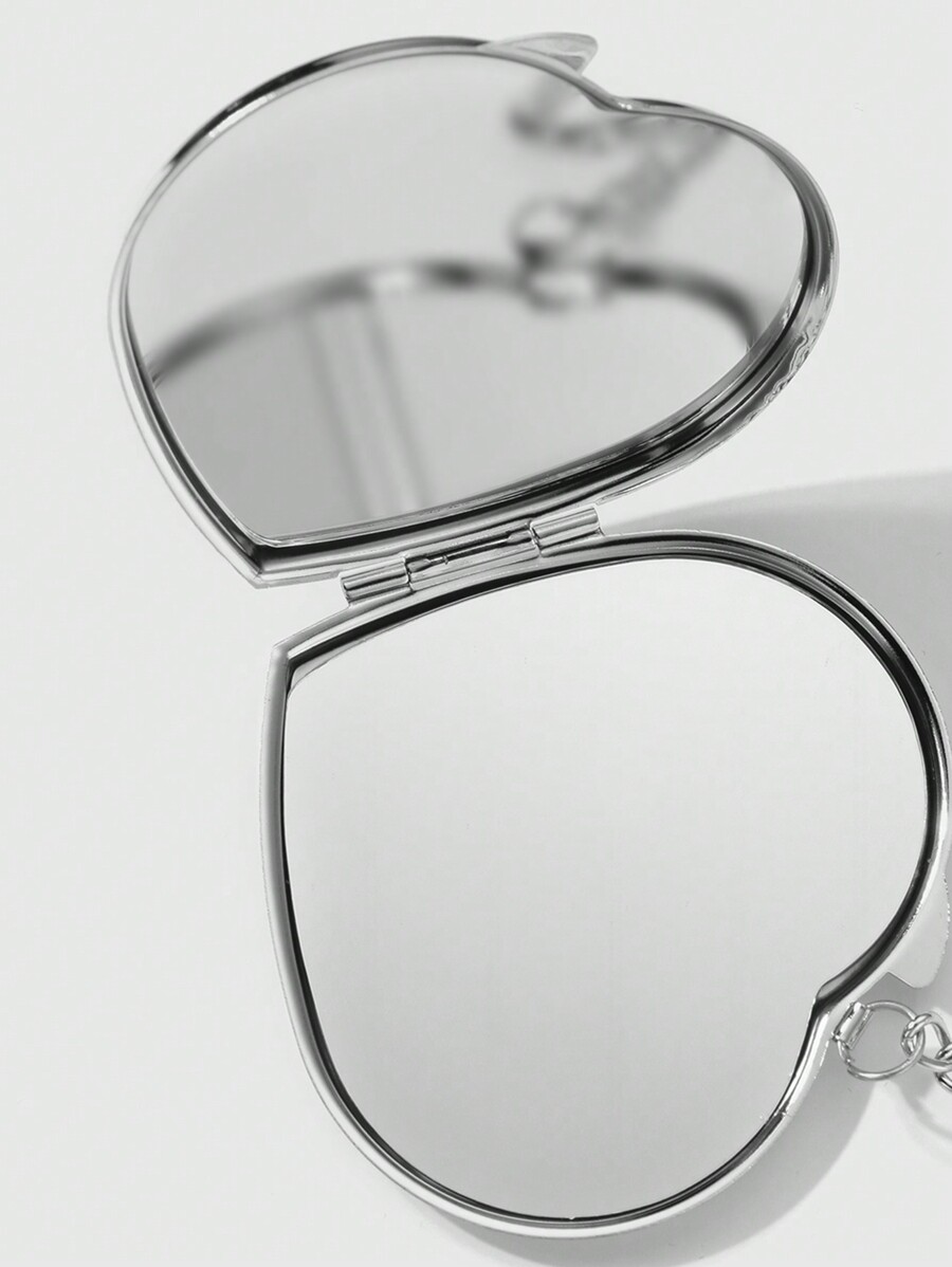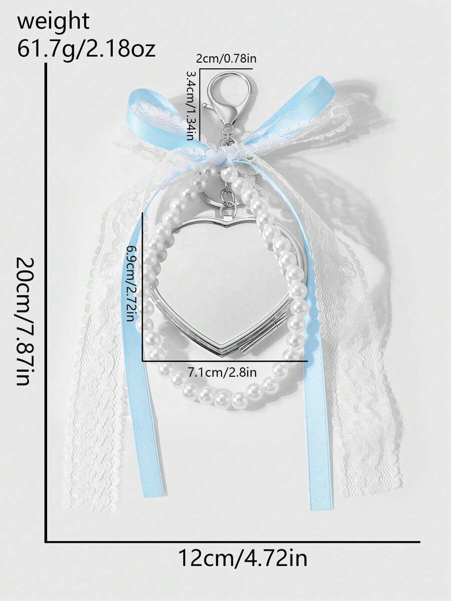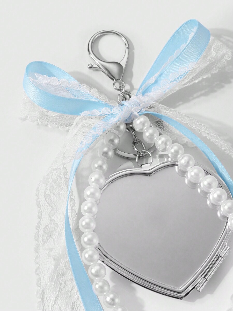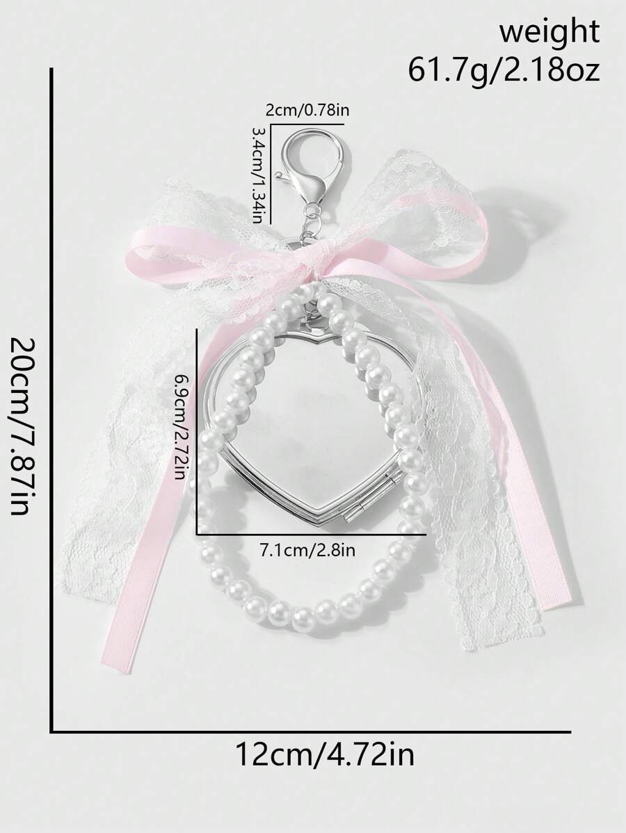 Kawaii قلادة مفتاح خرزية منسوجة من الخيوط مرآة الجانب بشكل قلب شيطاني، فاخرة بنوع اللؤلؤ الأبيض المزيف ، عقدة الفراشة من التول، مناسبة للنساء والفتيات للاستخدام اليومي أو كهدية للمناسبات